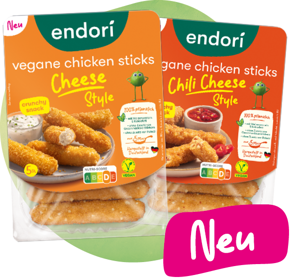 mit unseren neuen veganen Chicken SticksCrispy, cheesy & zu 100% pflanzlich? Das sind unsere neuen veganen Chicken Sticks in den Sorten Cheese Style und Chili Cheese Style. Saftiges Chicken und eine himmlisch-cremige Cheese-Style-Füllung treffen auf knusprige Panade. A Match made in Snack Heaven. In der Sorte Chili Cheese Style haben unsere Chicken Sticks nochmal extra Chili on Top und sind so ein echter Traumsnack für alle, die scharf auf lecker sind. Krümeln ausdrücklich erlaubt!
